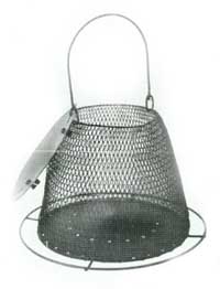 THE BLACK DOMED CAGE sports a cover that keeps rain and snow off the A-6 feeder inside. The A-6, the first tubular bird feeder, continues to be the standard for sunflower seed having a timeless appeal that parallels its workhorse performance. An 8" diameter heavy duty wire cage keeps grey squirrels from reaching through to the seed ports, while songbirds pass right through the 1 1/2" openings to the sanctuary inside. Dressed up in black, it makes a solid statement of classic good taste. The unit disassembles easily for cleaning. 16" long x 8" wide. bdc No longer make this feeder. ![]() | |