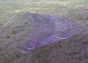 70"(round) x 48"(length) 10"(funnel wing spread) Made with 1" mesh 16 ga. galvanized welded wire, reinforced with 10ga. Galv. Ring wire. Comes with food box. $69.00 | |