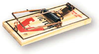 Gum drops, bacon, nuts, oats and dried fruit may be used in addition to peanut butter for bait. When trapping mice, make the bait in each trap about pea-size and attach it to the tripping mechanism with thread or thin wire if necessary. Traps should be baited with fresh material regularly to remain attractive to the pests. There should be many more traps than rodents for trapping to be effective. It is best to place traps close to each other (every 5 - 10 feet for mice - no more than 20 feet for rats) and move them every few days if no rodents are caught. Be aware, though, that older rats MAY avoid a newly placed trap for over a week so, for rats, you may want to leave traps in place for two weeks before trying another place. Success is enhanced by placing traps with the trigger-end against walls where the rodents like to run. This allows the pests to run across the trigger from both directions. Traps can be reused without special cleaning