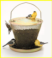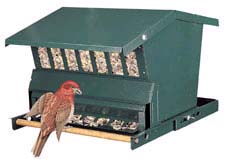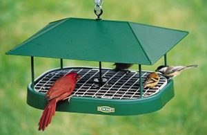 Songbirds gather round the newest Mandarin feeder. Designed to accommodate the whole flock, there's room for over ten birds, yes, that's ten-part harmony. The circular platform creates space for sky birds like the cardinal, yet allows the chickadee to throw an all day party.