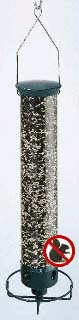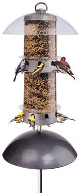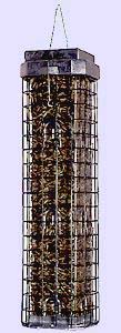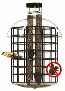 THE BLACK DOMED CAGE sports a cover that keeps rain and snow off the A-6 feeder inside. The A-6, the first tubular bird feeder, continues to be the standard for sunflower seed having a timeless appeal that parallels its workhorse performance. An 8" diameter heavy duty wire cage keeps grey squirrels from reaching through to the seed ports, while songbirds pass right through the 1 1/2" openings to the sanctuary inside. Dressed up in black, it makes a solid statement of classic good taste. The unit disassembles easily for cleaning. 16" long x 8" wide. bdc No longer make this feeder. ![]() | |
