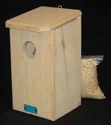 Saw-whet owls and screech owls have tough competition from other birds because they are so small. This house provides a perfect cavity, complete with wood chips for nesting material.